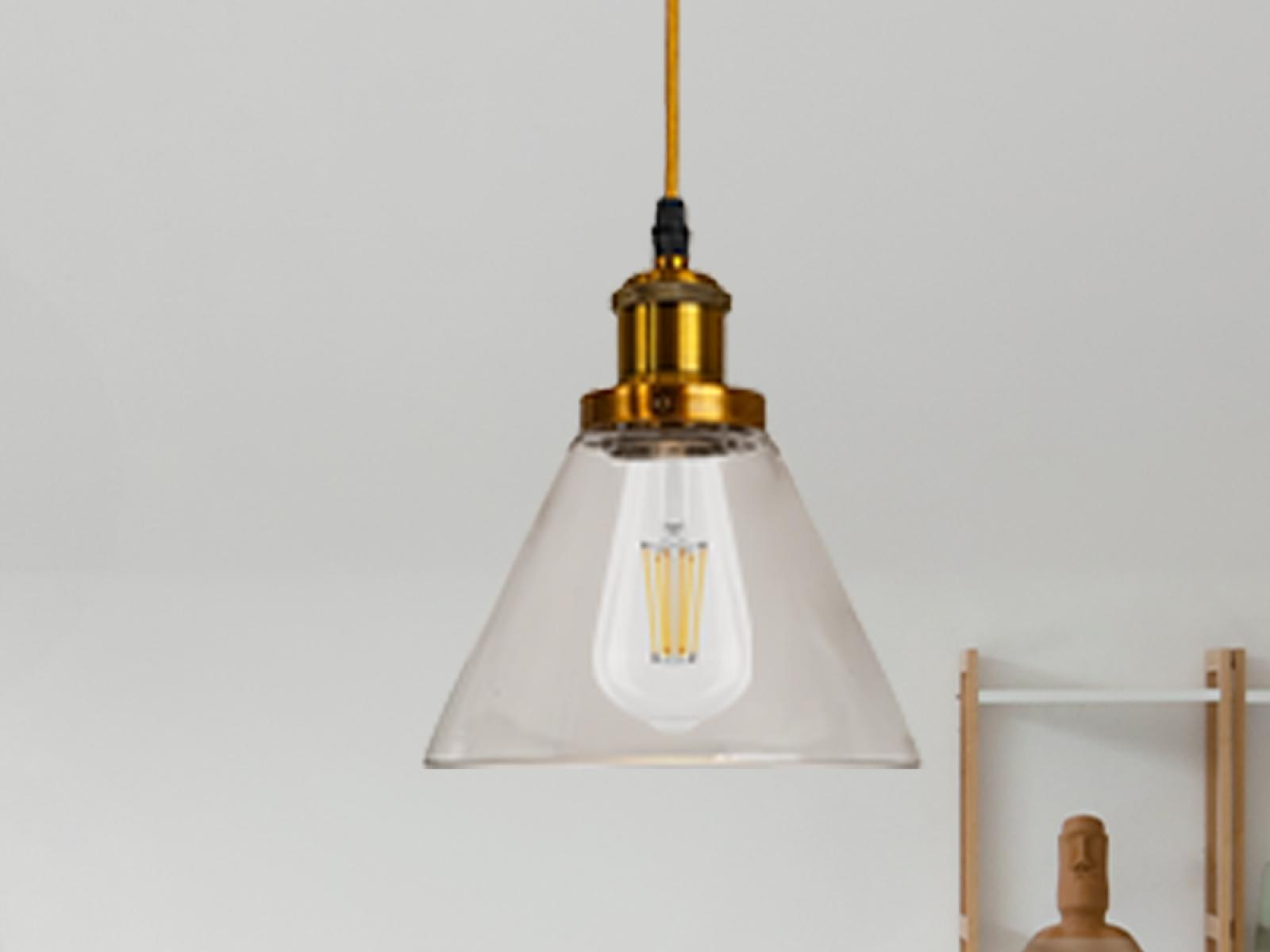 | materiál | sklo - číra ( podstava / objímka - kov, antická zlatá, kábel - textilný ) |