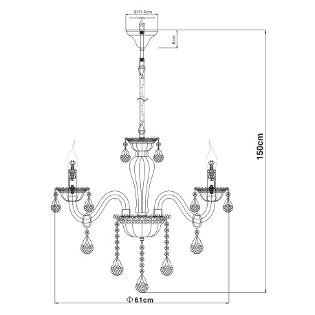 Závesné svietidlo, biele, sklo, K5 kryštály Ø 610, V:1500, bez žiaroviek 3xE14, max. 40W 230V.