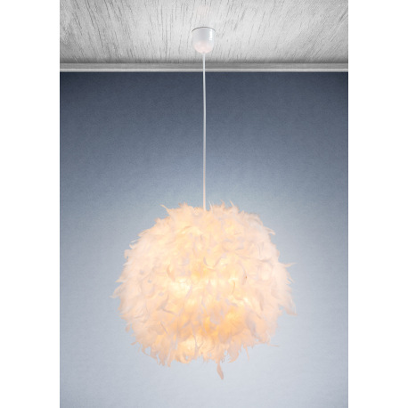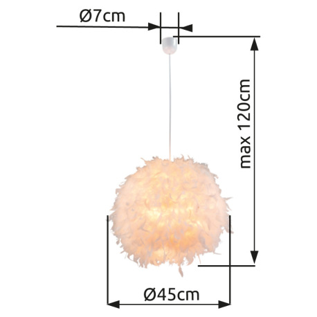 Závesné svietidlo, biely plast, textil biely, tienidlo s bielym perím, vrátane zavesenia, ø450 V:120