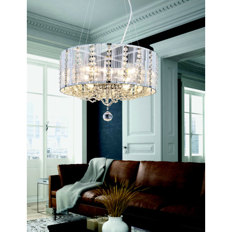 Závesné svietidlo, chróm, strieborné kovové tyče, K5 krištále priehľadné, Ø400, V:1300, bez žiarovie