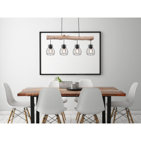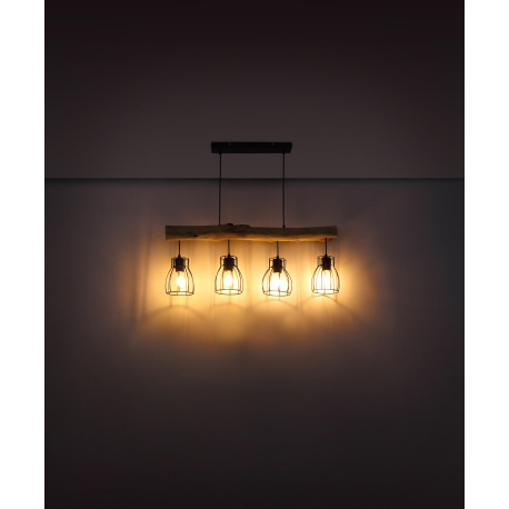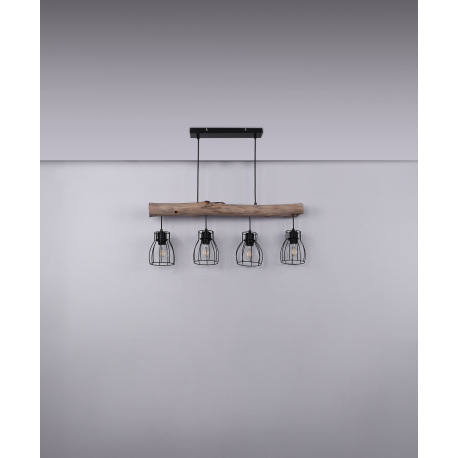 Závesné svietidlo, čierny kov, prírodné drevo, DxŠxV: 825x136x1400, bez žiaroviek 4xE27, max. 40W 23