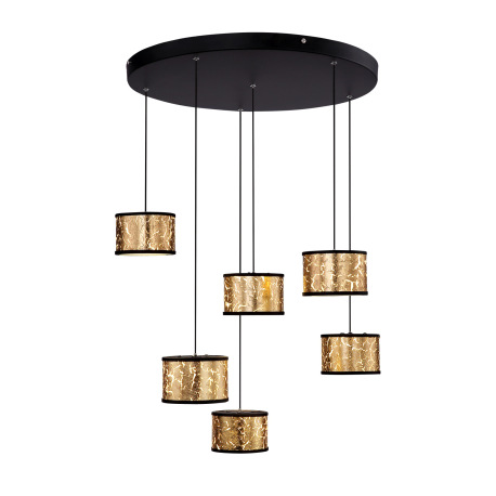 Závesné svietidlo, čierny kov, sklo, krištále plastové priehľadné, čierne sklo so zlatou fóliou, Ø56