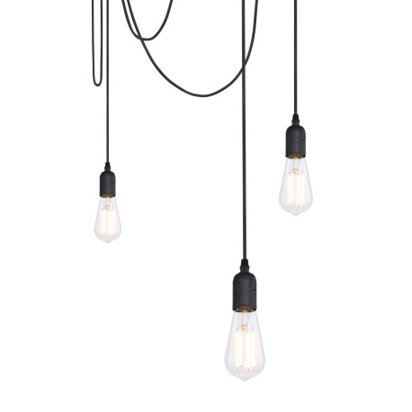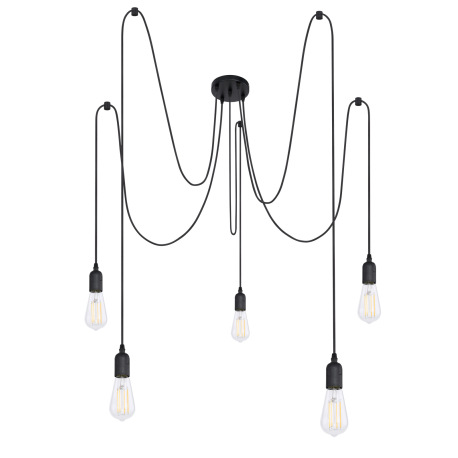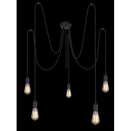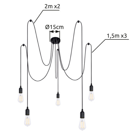 Závesné svietidlo, čierny kov, textilný kábel, plast, kábel 2x2m + 3x1,5m, Ø 150, bez žiaroviek 5xE2