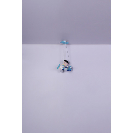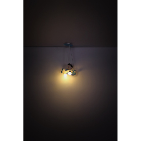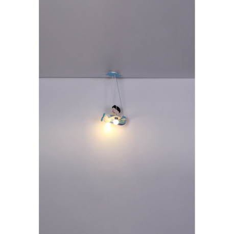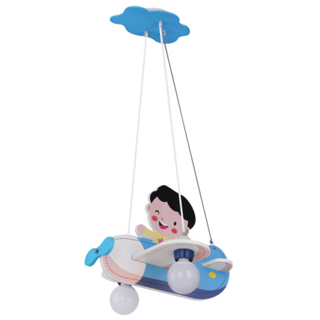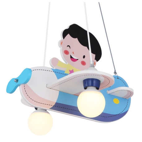Závesné svietidlo, drevo, modrá biela, plast opál, lietadlo s chlapcom, DxŠxV: 430x400x1200, bez žia