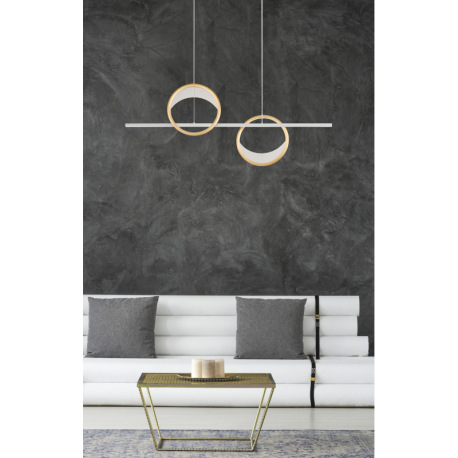 Závesné svietidlo, hliník strieborný a zlatý, akryl číry, plast biely, stmievateľné, niekoľko úrovní