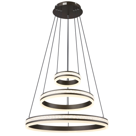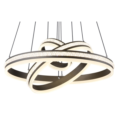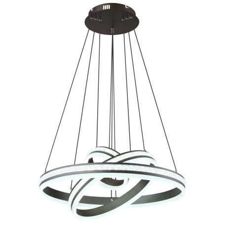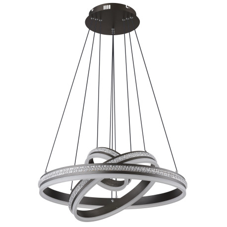 Závesné svietidlo, kov a hliník titánová farba, číre plastové krištále, akryl biely, stmievateľné,vi