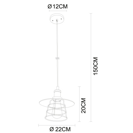Závesné svietidlo, kov bronzový, kov čierny, Ø220 V:1500, bez žiarovky 1xE27, max. 60W 230V.