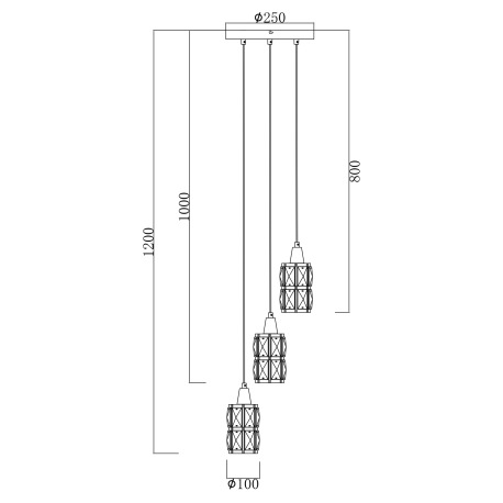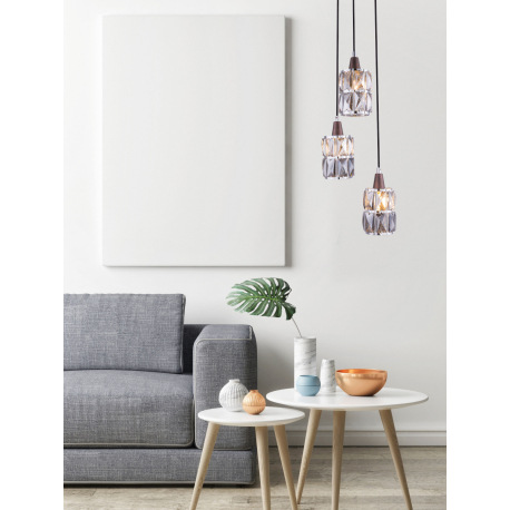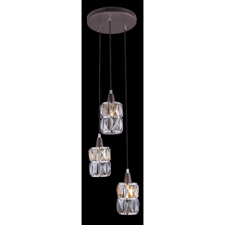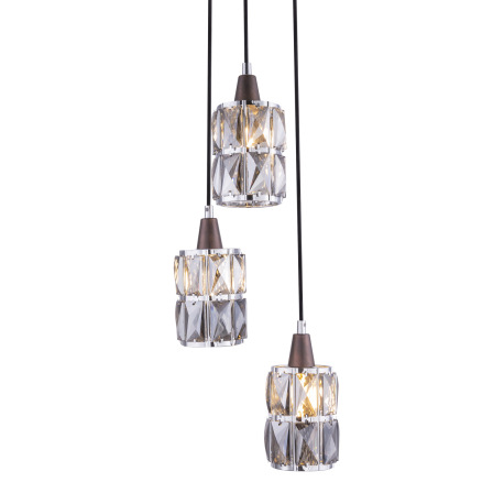 Závesné svietidlo, kov bronzový, sklenené krištále dymové, chróm, Ø250, V:1200, bez žiaroviek 3xE14,