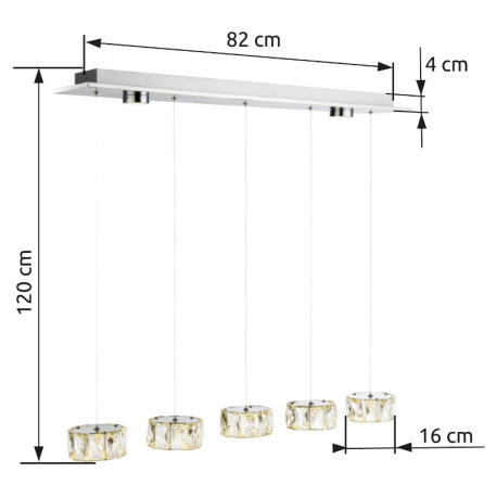 Závesné svietidlo, kov, chróm, akryl, sklenené kryštály, 2 LED spoty vo vrchnej časti svietidla, DxŠ