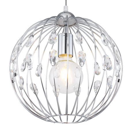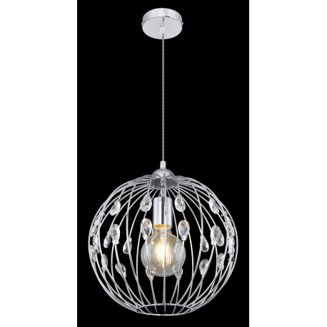 Závesné svietidlo, kov, chróm, krištáľ K9 číry, textilný kábel čierno-biely, Ø:300, V:1200, bez žiar