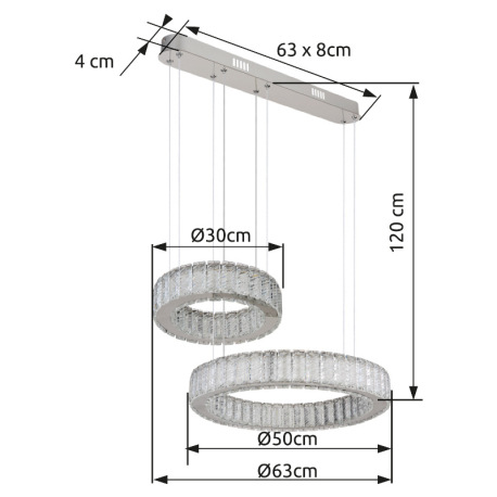 Závesné svietidlo, kov chróm, krištále K5 číre, chróm.krúžok, stmievateľné, viac úrovní pomocou nást