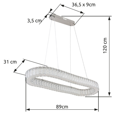Závesné svietidlo, kov chróm, krištále K5 číre, chrómový krúžok, stmievateľné, viac úrovní pomocou n
