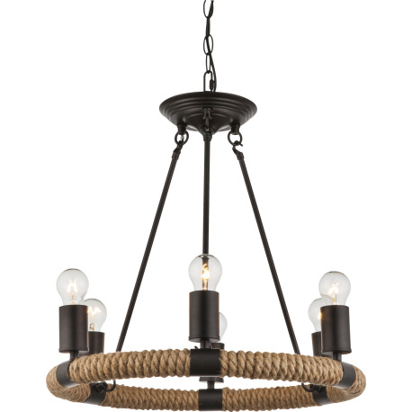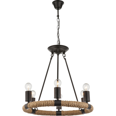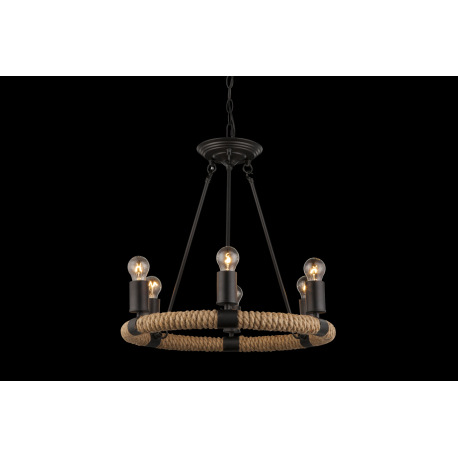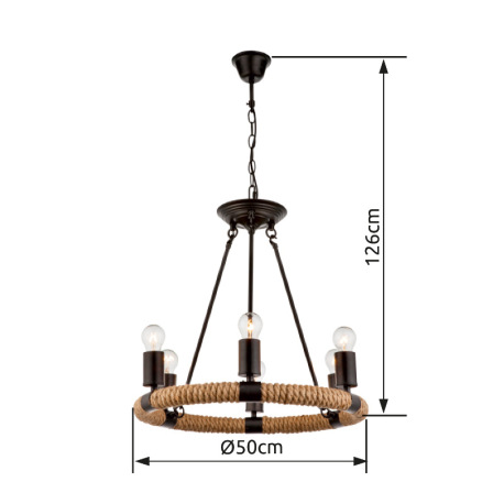 Závesné svietidlo, kov, čierna, hnedé konopné lano, Ø: 500, V: 1260, bez žiaroviek 6xE27, max. 40W 2