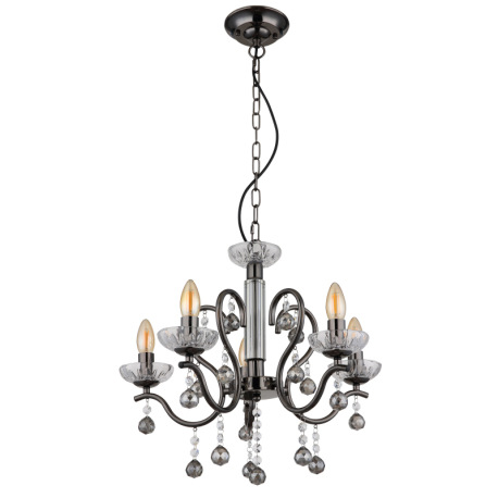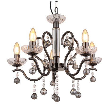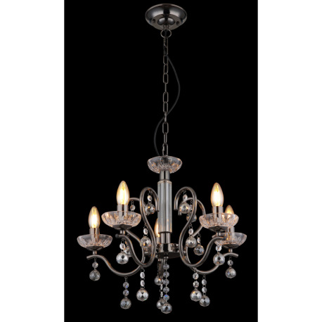 Závesné svietidlo, kov čierny chróm, číre sklenené krištále, krištále dymovej farby, výškovo nastavi