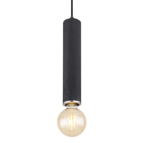 Závesné svietidlo, kov čierny, drevo čierne, kov nikel, textilný čierny kábel, ø: 120mm, V:1600mm, b