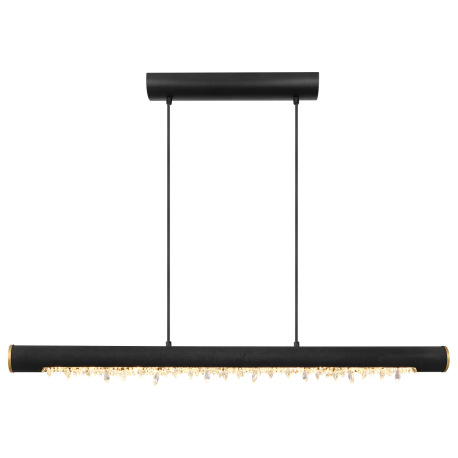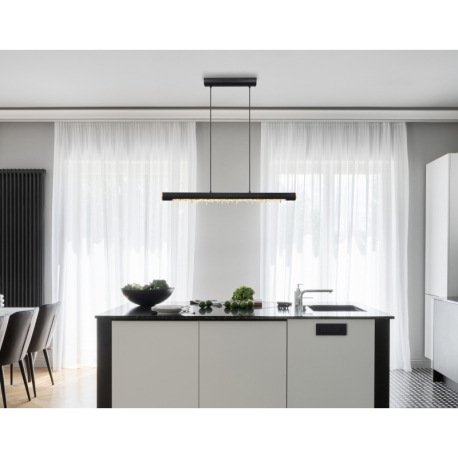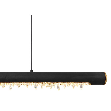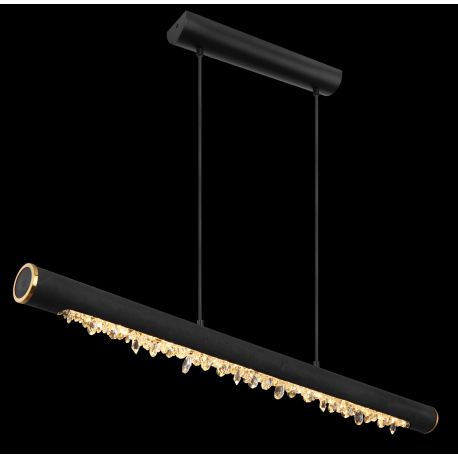 Závesné svietidlo, kov čierny, drevo čierne, priehľadné akrylové krištále, mosadzný krúžok, textilný