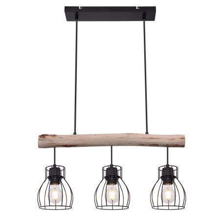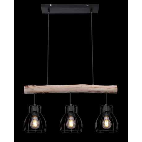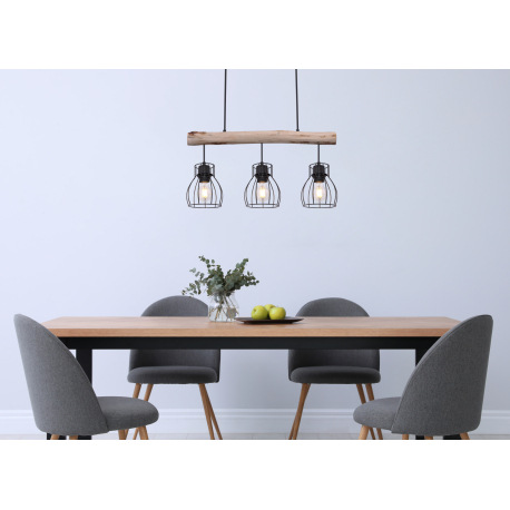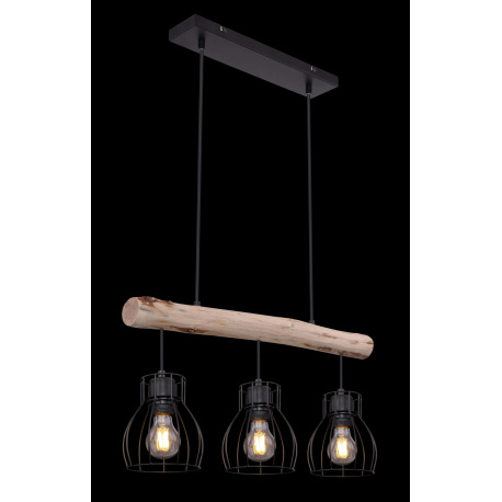 Závesné svietidlo, kov čierny, drevo, DxŠxV:600x136x1400, bez žiaroviek 3xE27, max. 40W 230V
