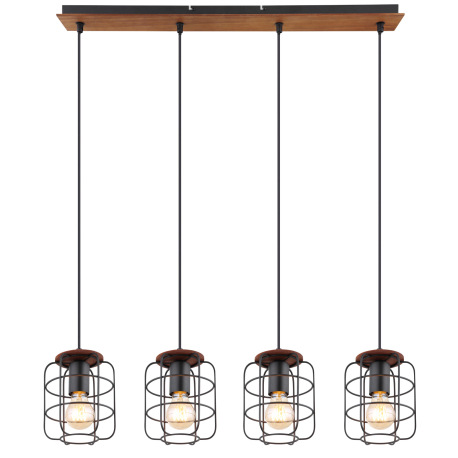 Závesné svietidlo, kov čierny, drevo hnedé, DxŠxV:740x150x1200, bez žiaroviek 4xE27, max. 40W 230V