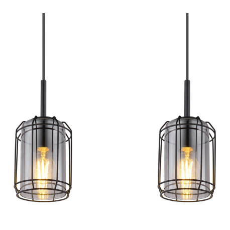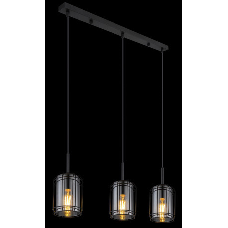 Závesné svietidlo, kov čierny, dymové sklo, DxŠxV:770x130x1200, bez žiaroviek 3xE27, max. 60W 230V