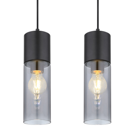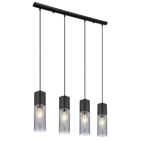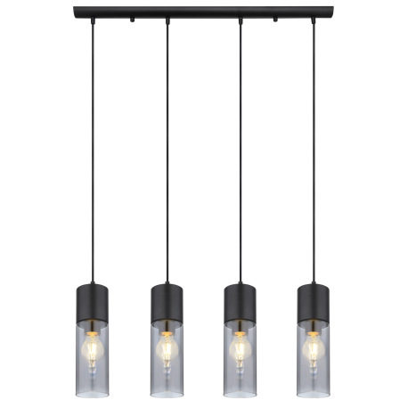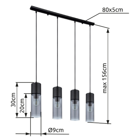 Závesné svietidlo, kov čierny, dymové sklo, kov čierny, textilný čierny kábel, DxŠxV:800x90x1560mm,