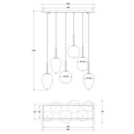 Závesné svietidlo, kov čierny, dymové sklo, výškovo nastaviteľné, DxŠxV:800x340x1200mm, bez žiarovie