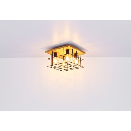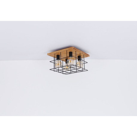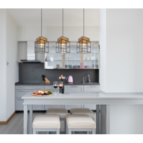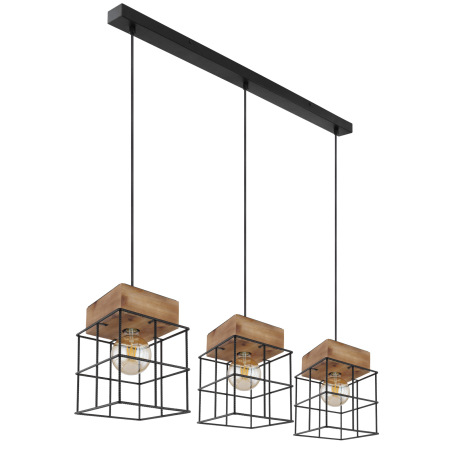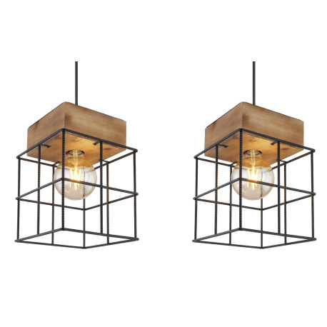 Závesné svietidlo, kov čierny, hnedé drevo, oceľová klietka, textilný kábel čierny, DxŠxV:950x200x12