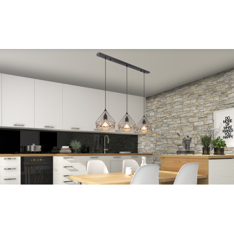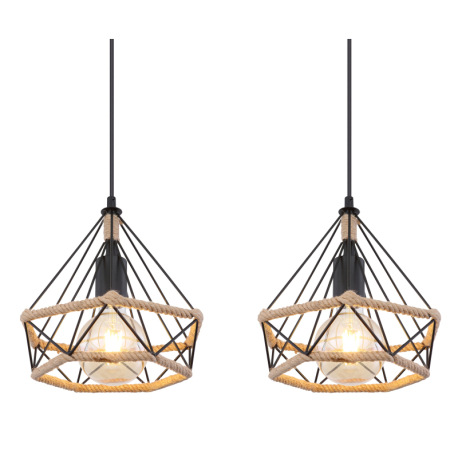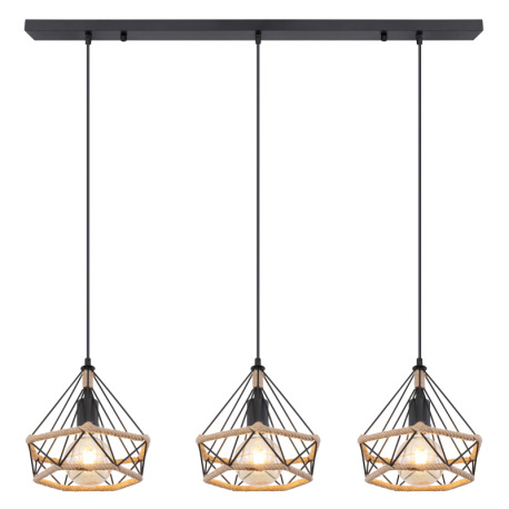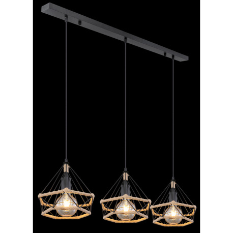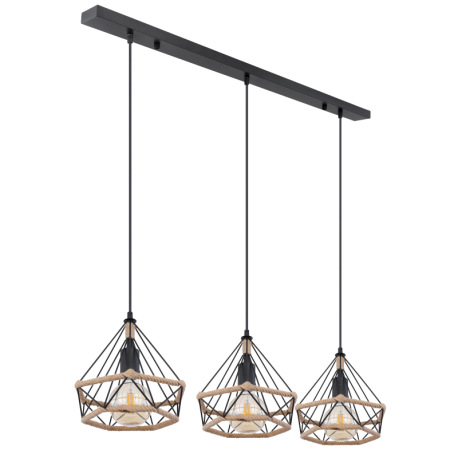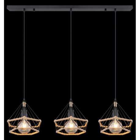 Závesné svietidlo, kov čierny, konopné lano hnedé, kov čierny, DxŠxV:1000x250x1200, bez žiaroviek 3x