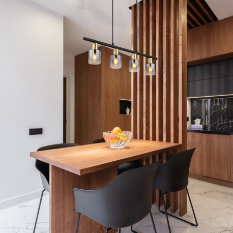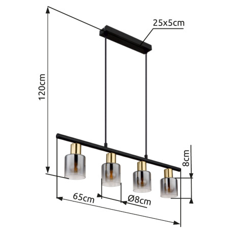 Závesné svietidlo, kov čierny, kov zlatý matný, sklo dymové, priehľadné, kábel PVC čierny, možnosť s