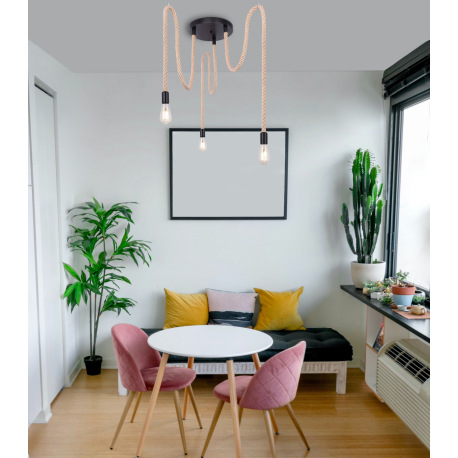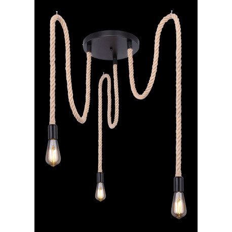 Závesné svietidlo, kov čierny, lano hnedé, Ø300, V:1600, bez žiaroviek 3xE27, max. 60W 230V