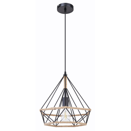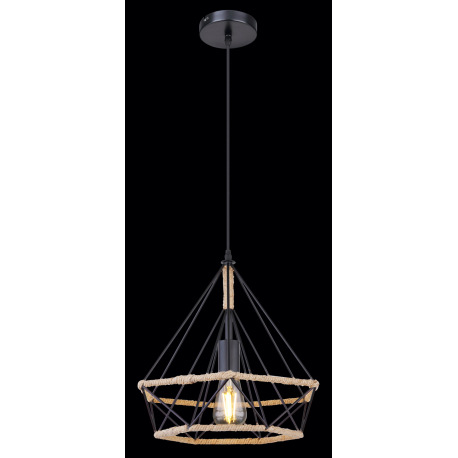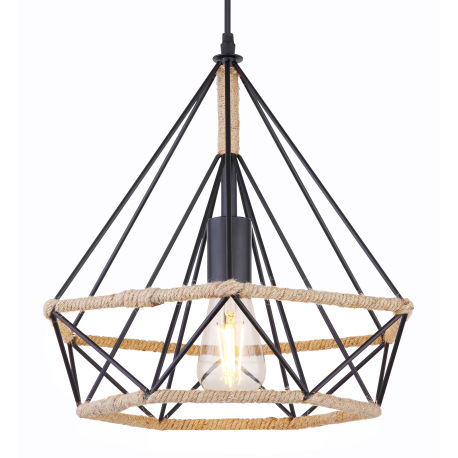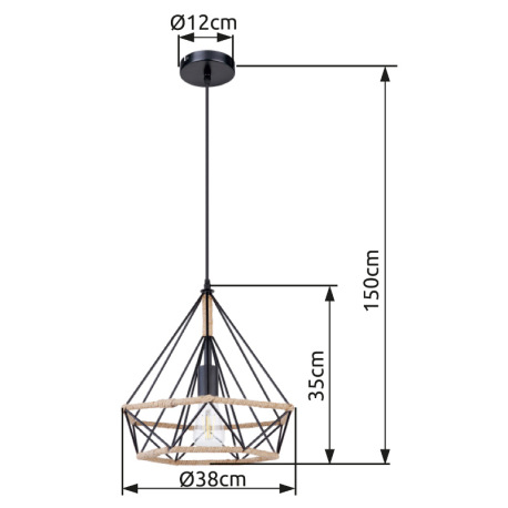 Závesné svietidlo, kov čierny, lano hnedé, Ø380, V:1500, bez žiarovky 1xE27, max. 60W 230V