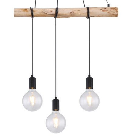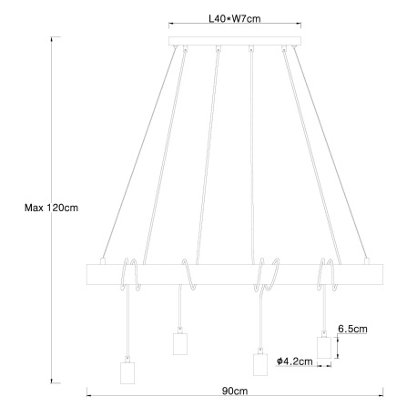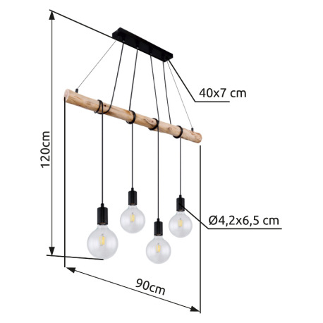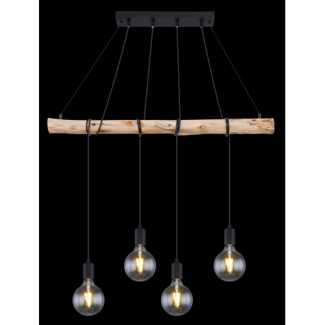 Závesné svietidlo, kov čierny matný, drevo, DxŠxV: 900x70x1200, bez žiaroviek 4xE27, max. 60W 230V