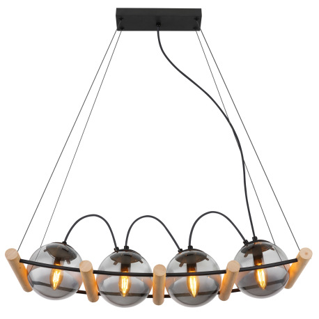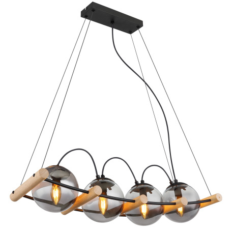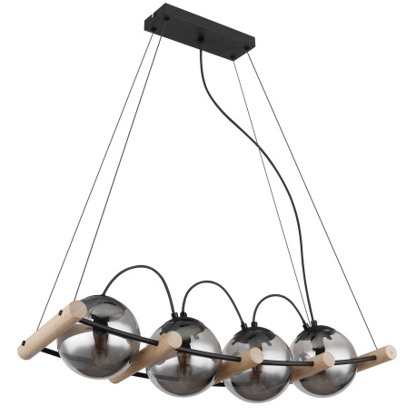 Závesné svietidlo kov čierny matný, drevo prírodnej farby, sklo dymovej farby, kábel PVC čierny, výš