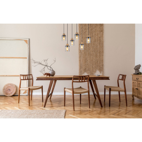 Závesné svietidlo, kov čierny matný, drevo, sklo dymové, kábel PVC čierny, DxŠxV: 620x180x1200mm, be