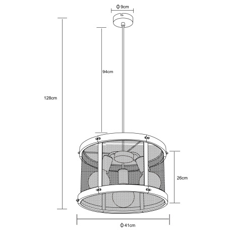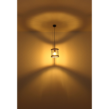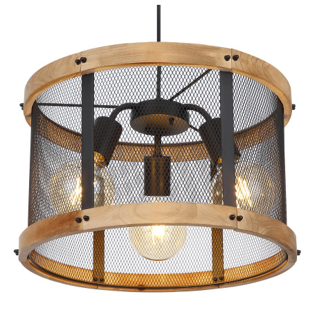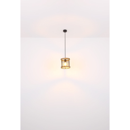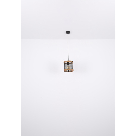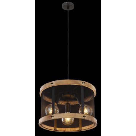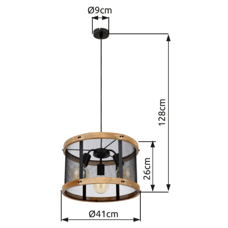 Závesné svietidlo kov čierny matný, drevo tmavohnedé, kábel textil čierny, ø: 400mm, V: 1200mm, bez