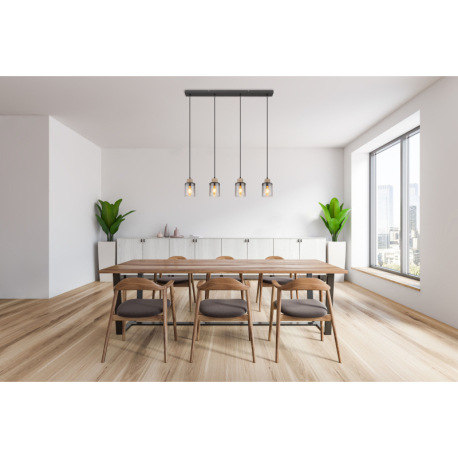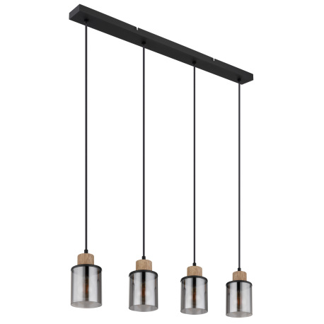 Závesné svietidlo kov čierny matný, drevo tmavohnedé, sklo dymové, kábel PVC čierny, DxŠxV: 780x100x