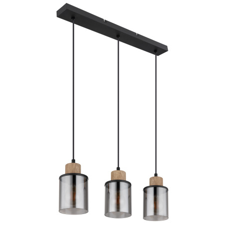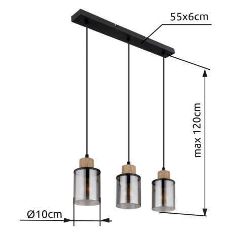 Závesné svietidlo kov čierny matný, drevo tmavohnedé, sklo dymovej farby, kábel PVC čierny, možnosť