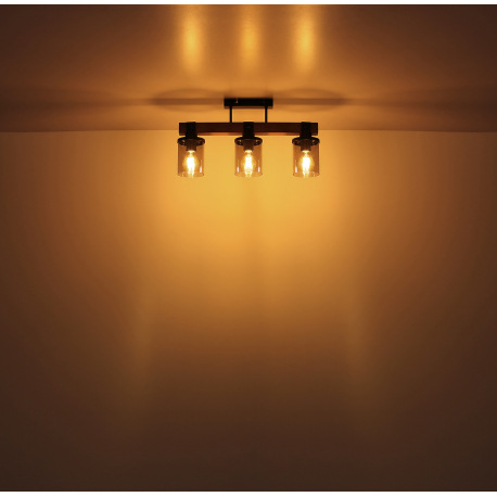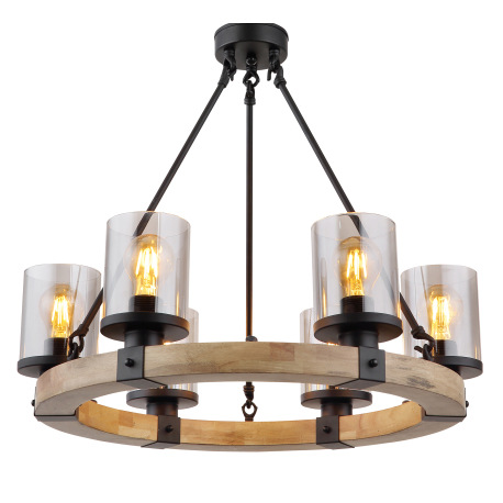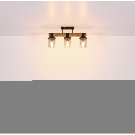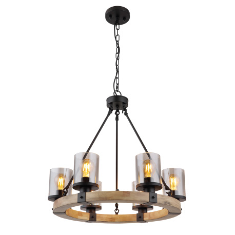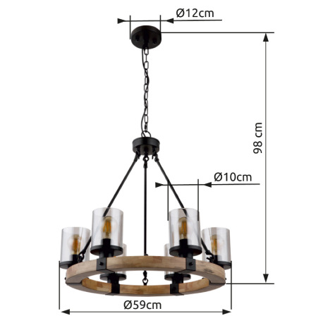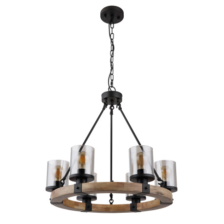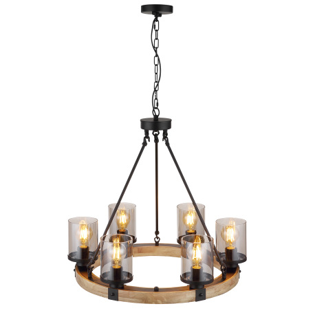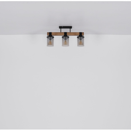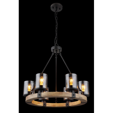 Závesné svietidlo kov čierny matný, drevo tmavohnedé, sklo dymovej farby, kábel PVC čierny, ø: 590 m