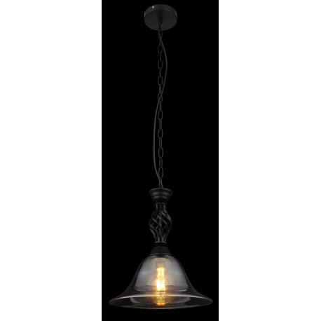 Závesné svietidlo, kov čierny matný, dymové sklo, kábel PVC čierny, ø:295mm, V: 1300mm, bez žiarovky