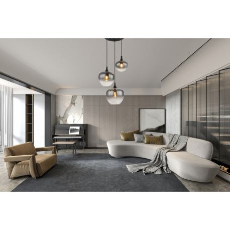 Závesné svietidlo kov čierny matný, dymové sklo, kábel textil čierny, ø: 480 mm, V: 1200 mm, priemer