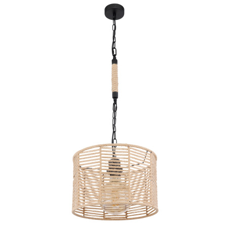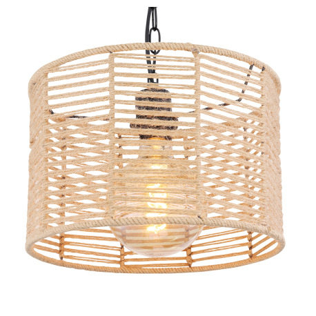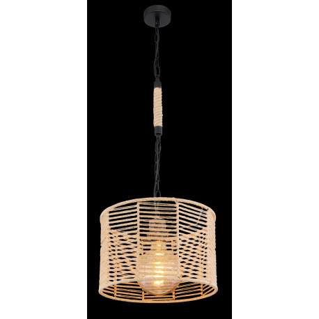 Závesné svietidlo, kov čierny matný, konopné lano, čierna reťaz, Ø 310, V: 1200, bez žiarovky 1xE27,
