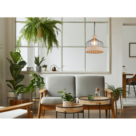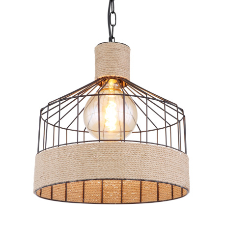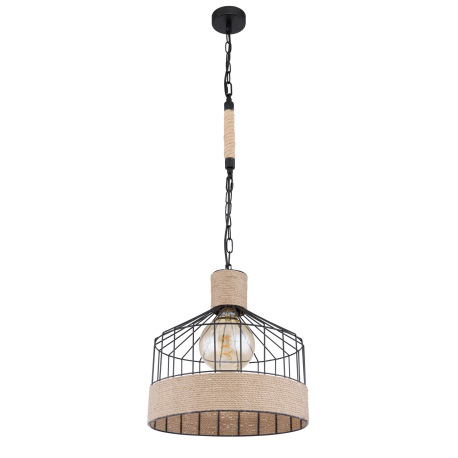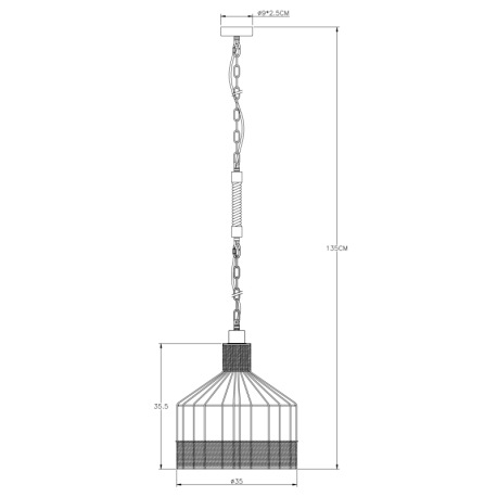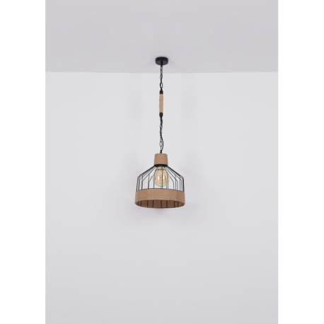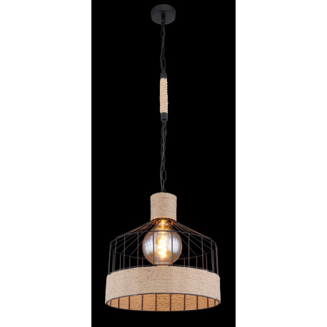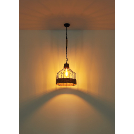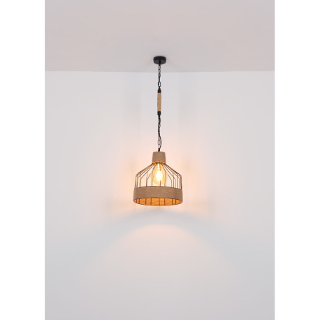 Závesné svietidlo, kov čierny matný, konopné lano hnedé, čierna reťaz, Ø 350, V: 1350, bez žiarovky