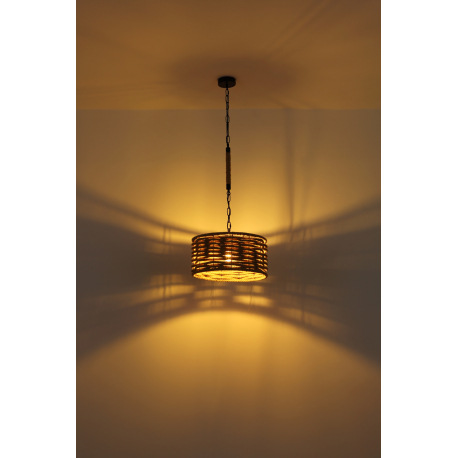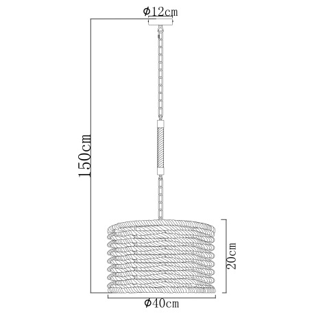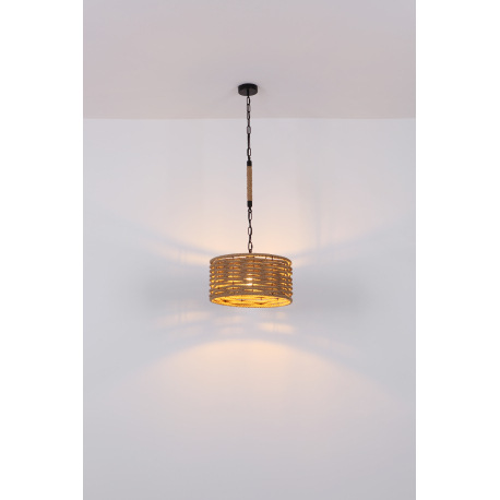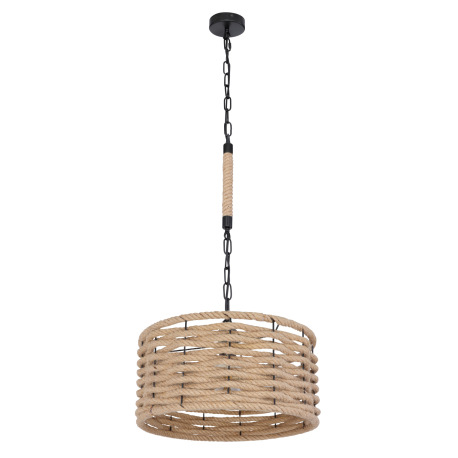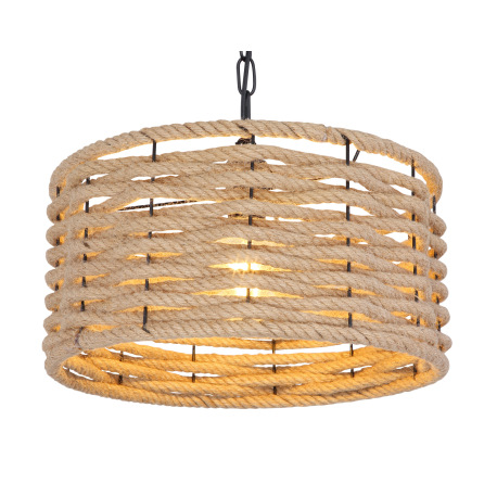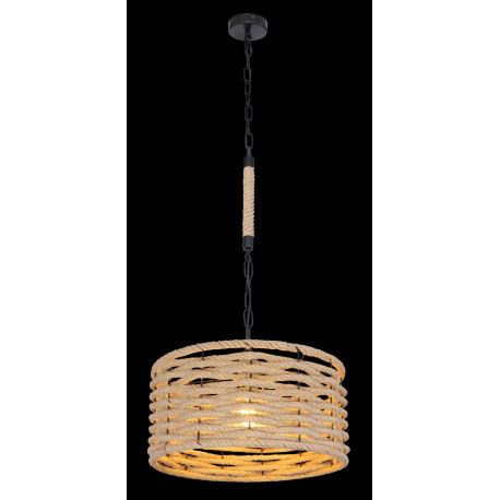 Závesné svietidlo, kov čierny matný, konopné lano, s čiernou reťazou, Ø:400, V:1560, bez žiarovky 1x