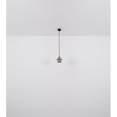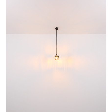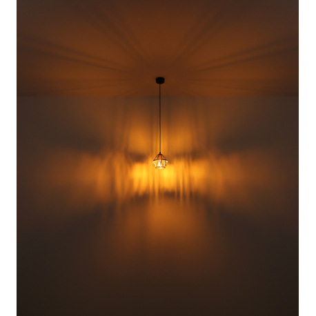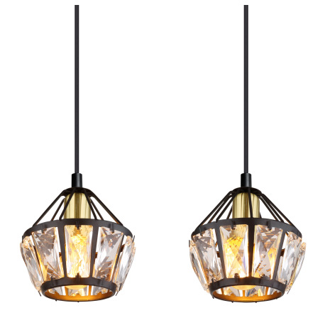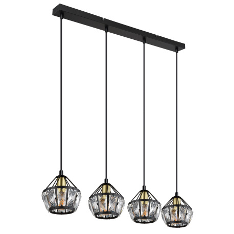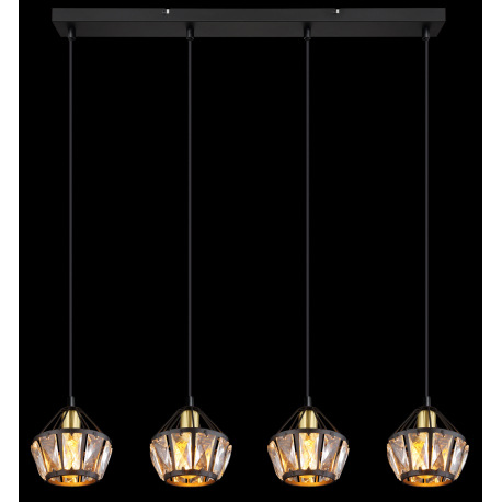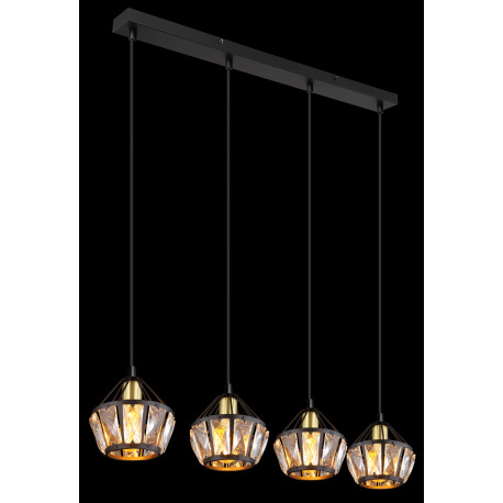 Závesné svietidlo, kov čierny matný, kov mosadz, kovové tyče čierne matné, sklenené krištále priehľa