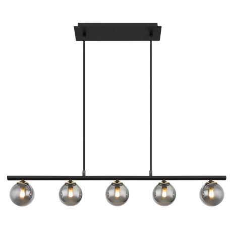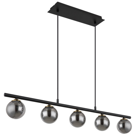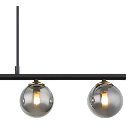 Závesné svietidlo, kov čierny matný, mosadz matná, sklo dymovej farby, kábel PVC čierny, nastaviteľn