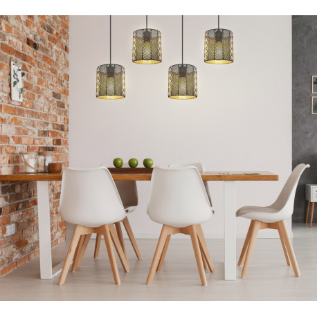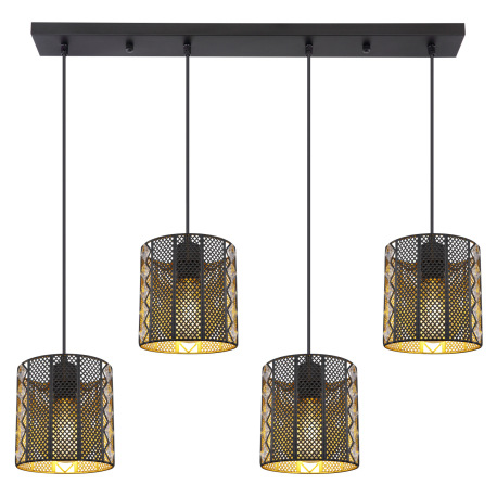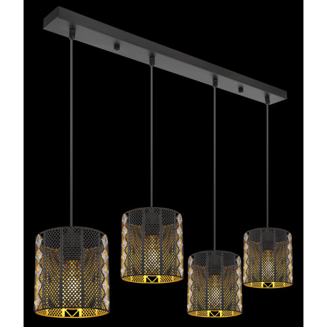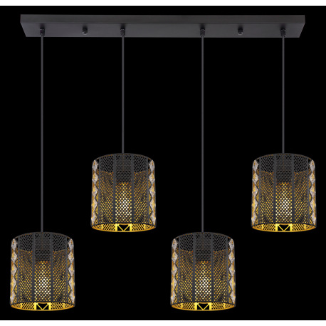 Závesné svietidlo, kov čierny matný, priehľadný akryl, krištále, tienidlá z vnútra zlaté, DxŠxV:800x