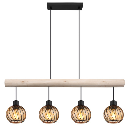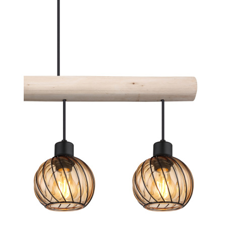 Závesné svietidlo kov čierny matný, prírodné drevo, sklo jantárovej farby, kábel PVC čierny, výškovo