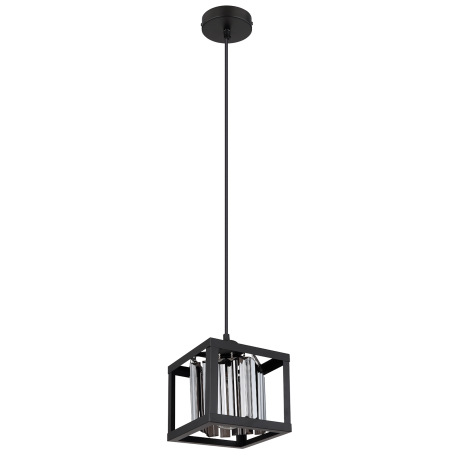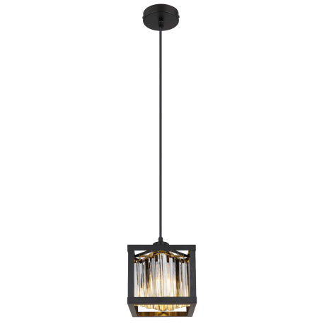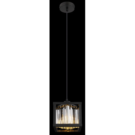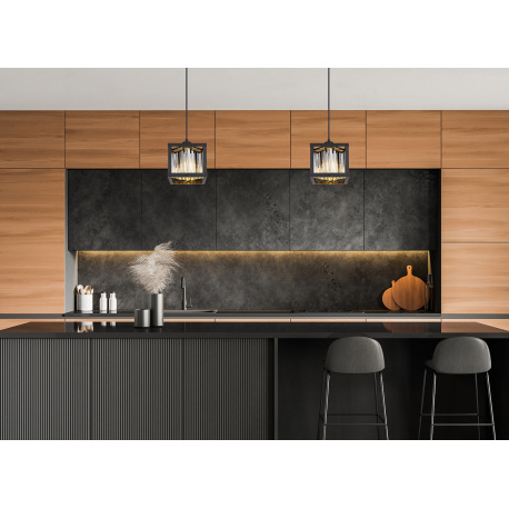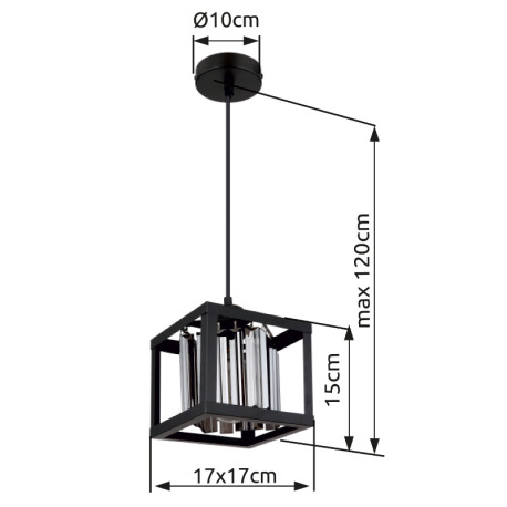 Závesné svietidlo kov čierny matný, sklenené kryštály dymovej farby, DxŠxV: 170x170x1200mm, bez žiar