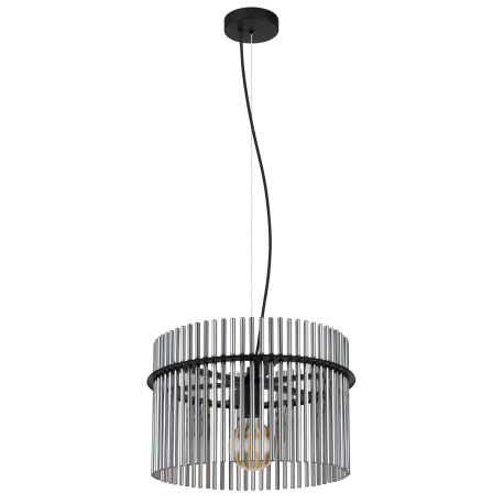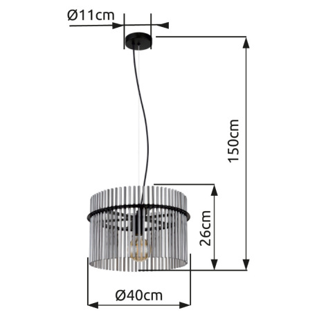 Závesné svietidlo, kov čierny matný, sklenené tyčinky dymovej farby, kábel PVC čierny, možnosť nasta