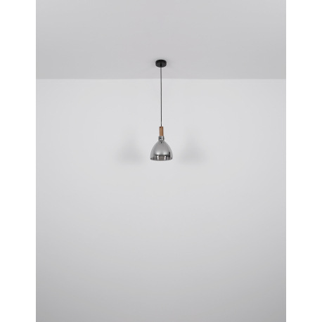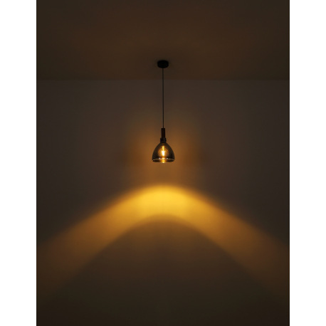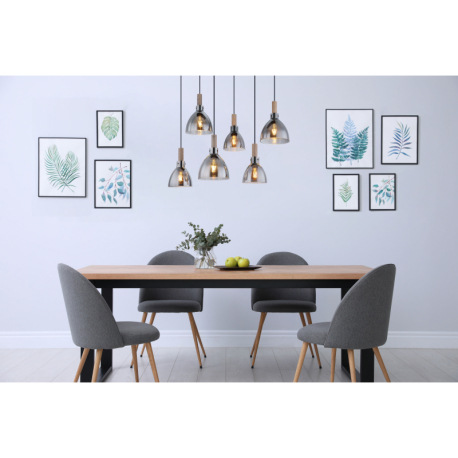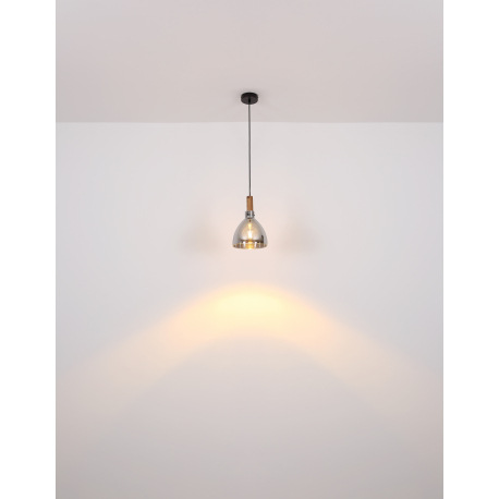 Závesné svietidlo, kov čierny matný, sklo dymové, MDF so vzhľadom dreva, kábel PVC čierny, možnosť n