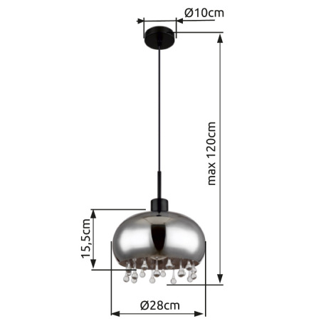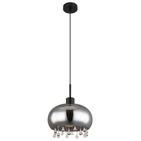 Závesné svietidlo, kov čierny matný, sklo dymové, sklenené krištále priehľadné, textilný kábel čiern
